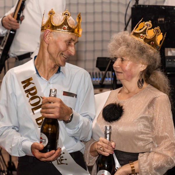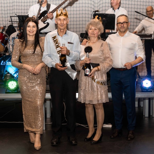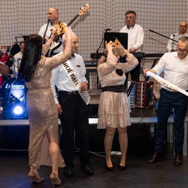 Przybyli goście najpierw zasiedli do wspólnego posiłku, a następnie wyruszyli na parkiet. Wybraliśmy także Królową i Króla Balu. Koronowanymi tego wieczoru głowami zostali pan Stanisław Śpicha i pani Grażyna Kural.